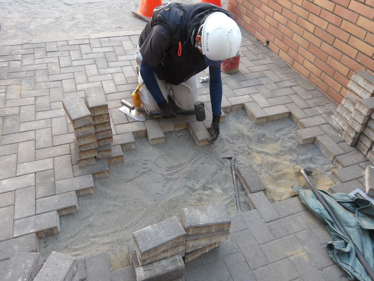 タイルや車止めの施工、損傷した部位の修繕等を通して安全・快適に通行できるよう整備します。