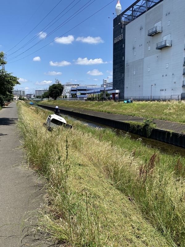 川周辺の除草です。町の景観を守り・虫の発生などを抑えるためにも大事な作業です。